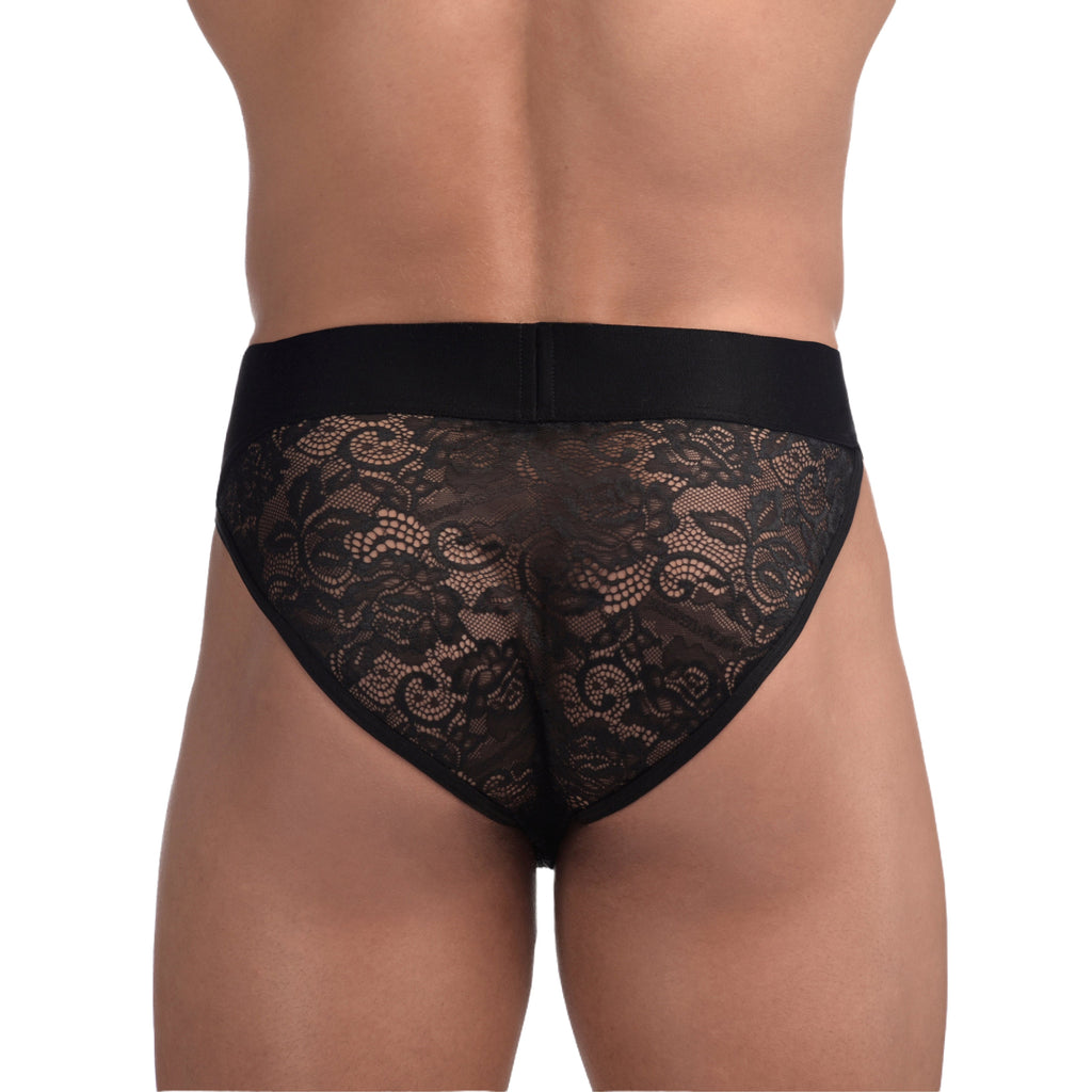 Crafted with a 2-inch wide cotton and viscose elastic waistband, this bikini offers a snug yet comfortable fit that hugs your body in all the right places. The soft waistband ensures that you can move freely without any discomfort, allowing you to feel confident and beautiful throughout your day. The rear features a soft, see-through lace that not only enhances the aesthetic appeal but also adds a playful surprise, making this bikini truly one-of-a-kind.