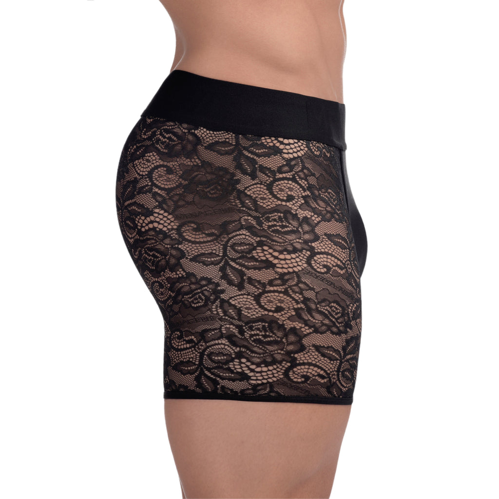 Our Boxer Brief | Black | Rose Signature Edition is constructed from high-quality materials for durability and softness. The fabric composition includes 90% polyamide and 10% elastane for the lace, while the contrast elements feature 76% polyamide and 24% elastane, and binding crafted from 94% polyamide and 6% elastane. This thoughtful combination guarantees a product that maintains its shape while providing the comfort and flexibility you desire.