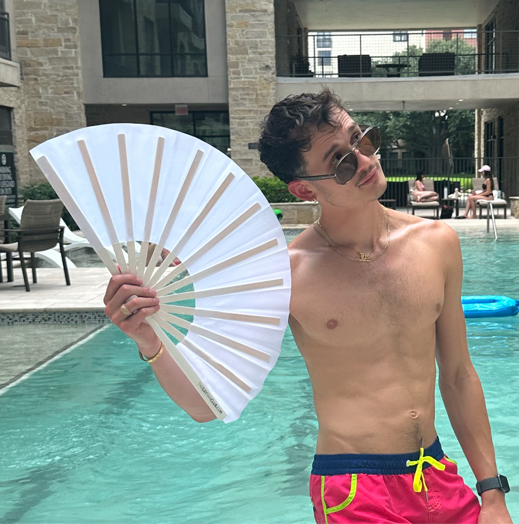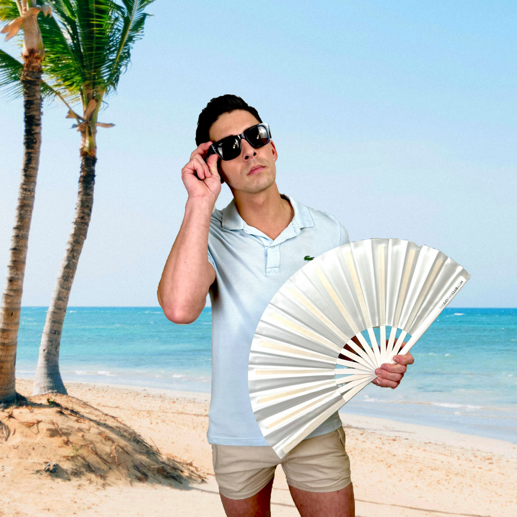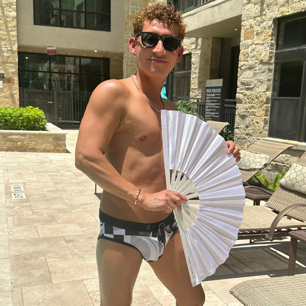 Steal this show with this white bamboo hand fan, The White Fan, a UV-reactive bamboo rave fan with a sleek white design that brings minimalist style with maximum impact. Whether you’re at a rave, drag show, or Pride festival, this UV-reactive white bamboo hand fan lights up the night (literally) — and claps back with every snap.