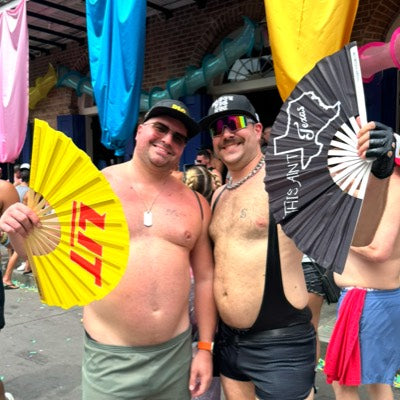The This Ain't Texas Fan is a hand fan for drag with a little nod to Queen Bey and a whole lot of side-eye. This black and white drag fan is perfect for calling out cowboy cosplay and serving big city energy with a bold snap. Whether you’re strutting through Pride, shutting down the honky-tonk, or giving glam at drag brunch, the This Ain't Texas Fan makes sure no one gets it twisted.