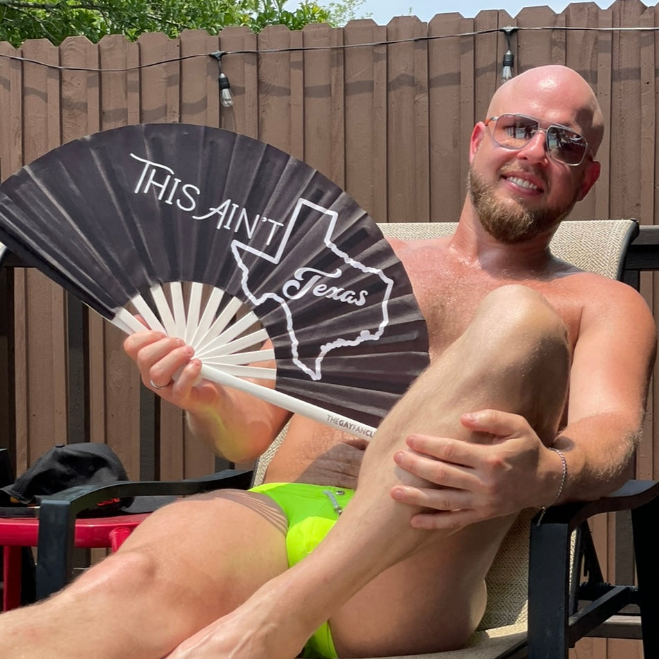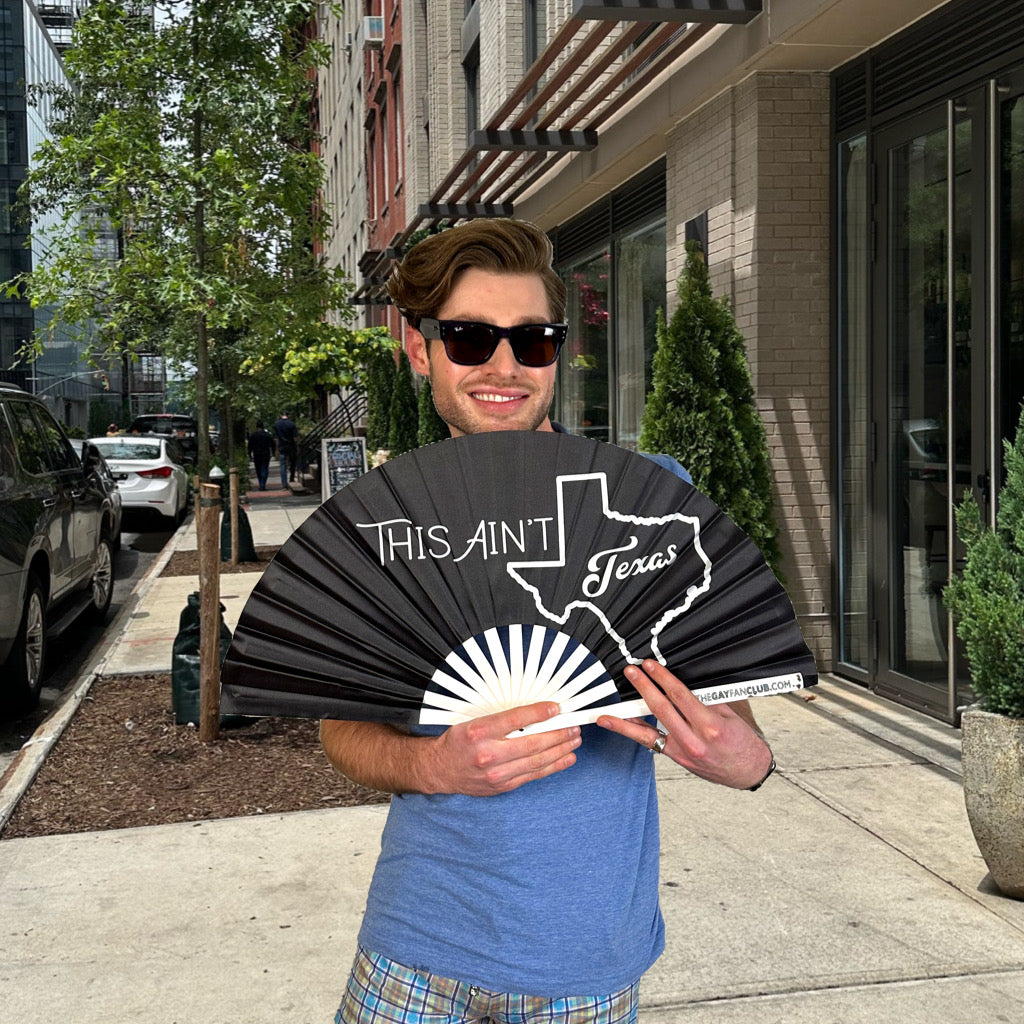 • 🤠 Bamboo hand fan with bold “This Ain’t Texas” statement